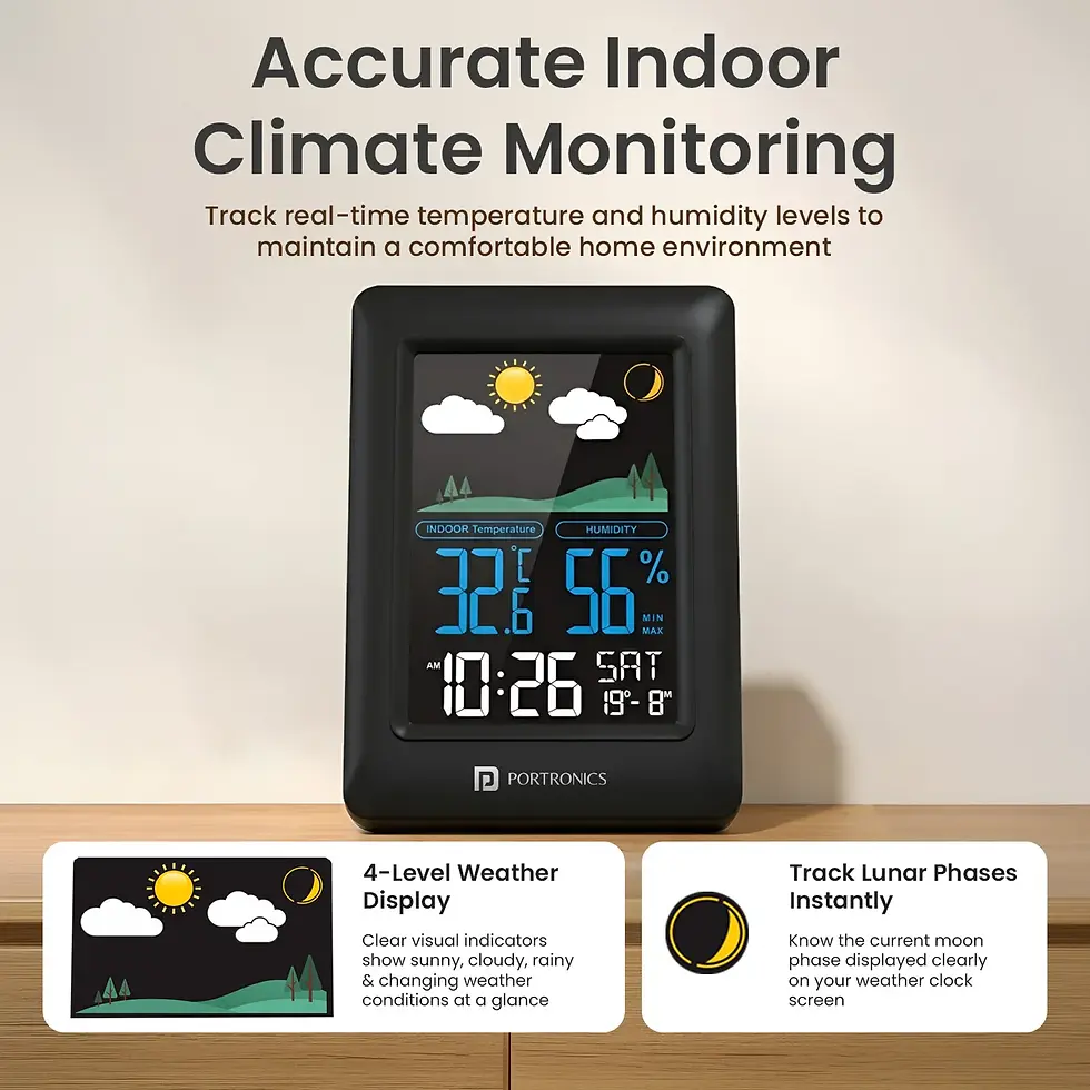 Portronics Meteo Smart Weather Clock With Indoor Temperature & Humidity Display